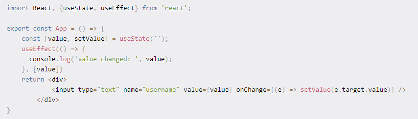 변화하는 상태 변수에 부작용을 일으키고 싶다면 useEffect() 훅을 사용하여 해당 변수를 트리거할 수 있다. 예를 들어 입력 상자의 입력 값이 변경된 경우 변경 후 API를 호출한다고 가정합니다. API 핸들의 로직을 useEffect() 블록에 쓸 수 있다.
